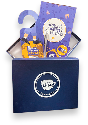 ● Os 30 primeiros que se matricularem nesta segunda-feira, vão receber uma caixa do Francês Ativo com caderno, caneta, aviso de porta para você usar nos seus estudos, para já começar com entusiasmo a ativação do seu francês. Ah, o frete é grátis para o Brasil, então se você não estiver no país, pode pedir para alguém da sua família ou seu amigo enviar para você.